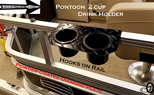 J & O Carts Parts Pontoon-Boat-Powder-Coated-Diamond-Plate-2-Cup-Drink-Holder-Fits-1-1-4-Rail