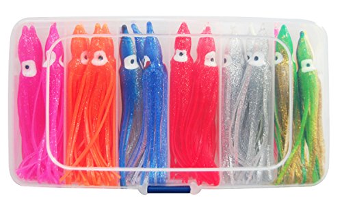 Jasmine 11cm 24pcs/lot Overstriking Octopus Squid Skirt Fishing Lures Sea Trolling Baits Soft Bait Big Game Fishing Lures Color Mixed