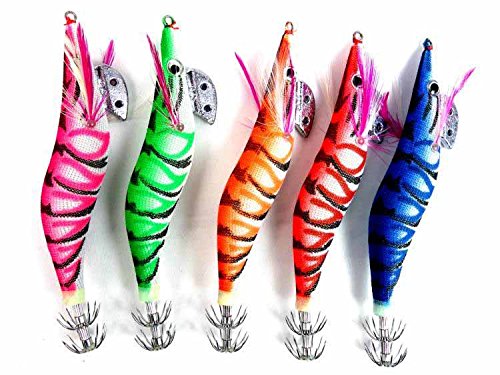 JL 5PCS Size3.0 Glow in Dark Luminous Squid Jigs Fishing Lure, Assorted Colors