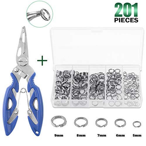 Keadic 200Pcs [5 – Sizes] Heavy Duty Stainless Steel Split Fishing Rings – Double Snap Loop Lure Connectors with Fishing Pliers Accessory 30lb to 120lb Test