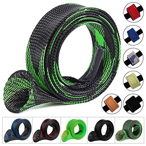 - Package suit:Fishing gear contains fishing rod sleeve x 6, rod strap x 6, 6 colors of fishing rod sleeve which are black, black+blue, black+red, black+green, green+fluorescein+orange, half black+half green. 6 colors of rod straps: gray-blue, red, orange, black and light yellow