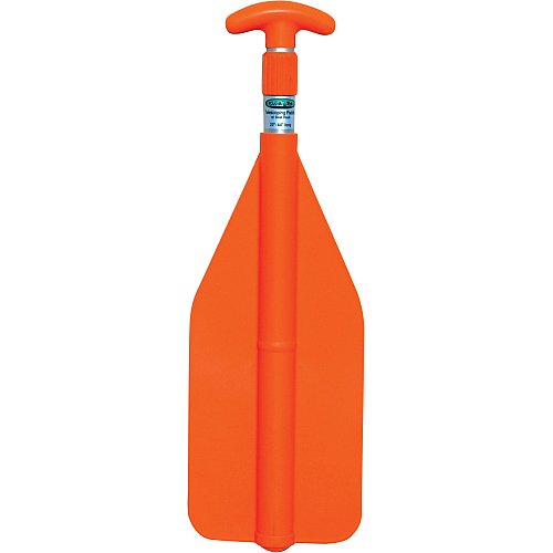 This Kwik Tek telescoping paddle for boating adjust easily to variable lengths with a simple twist. A section of the aluminum shaft disappears inside the blade to allow for compact storage under boat seats or in PWC storage compartments. The corrosion-resistant aluminum shaft, high-impact molded blade and boat hook handle, and hassle-free locking device ensure years of service. The bright orange blade is great for signaling in emergencies.