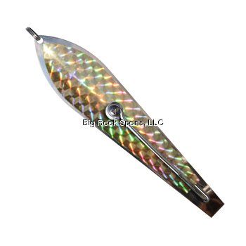 Eco Lure Spoons feature stainless steel split rings, stainless steel screw and nut to secure a 9/0 Mustad Hook, and a stainless steel blade size 3 1/2 (5 1/2 inch blade). Eco Lures are available only in Stainless (top row left) with or without any of the flash scale colors shown above. For example, "S/OFS" (bottom row left) specifies Stainless with Orange Flash Scale, which is one of our new flash scale colors, along with Sky Blue and Mirror Gold.