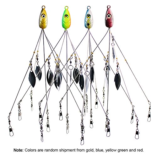 Lixada 5 Arms Alabama Umbrella Rigs with Barrel Swivels Fishing Lures Bait Rigs for Bass (4 Pcs)