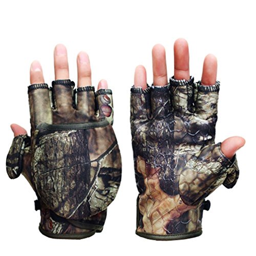 Luwint Men’s Camo Mitten Gloves with Fold Back Pocket for Photographing Ice Fishing Hunting