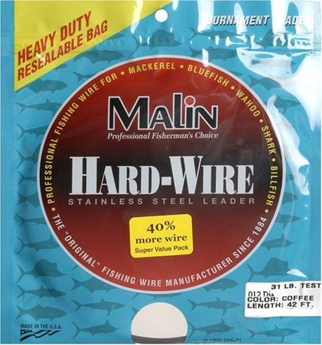 Solid, single strand, stainless steel leader,. packaged in resealable bags for easy use. and storage.