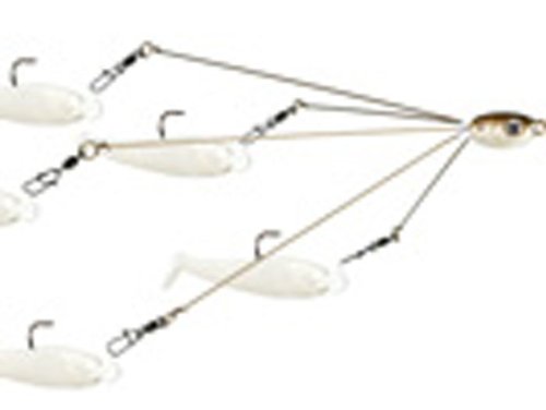The most sought after product in the last 25 years in bass fishing. It is Patent Pending and great for all types of fish. It is the first castable version of an umbrella type rig. These rigs work great at imitating a school of baitfish and have been consistant producers since they were introduced. Check your local regulations as some states have rules regarding the use of lures like this.