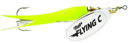 Mepps Flying C - Here is the perfect salmon and steelhead lure for the pier or stream fisherman. It is proven in Alaska and the Pacific Northwest. The Mepps Flying C is a heavyweight spinner that drops deep and stays deep throughout the retrieve. In fact, it's one of Mepps deepest running spinners. Its bright fluorescent sleeve acts as a highly reflective attractor.