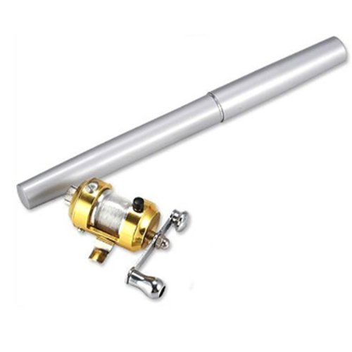 niceeshop(TM) Mini Pocket Aluminum Alloy Drum Wheel Pen Shape Fishing Rod/Pole-Silver