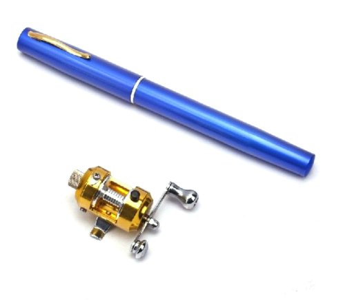 NuoYa001 Blue Portable Mini Pocket Pen Fishing Rod +Gold Reel & Line Set Camping Travel