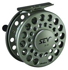 The Okuma® SLV fly reel is crafted with multi-disk cork and stainless drag washers and a roller bearing that engages the drag in one direction. The diecast aluminum, super-large arbor spool design includes non-slip, positive grip, rubberized handle knobs.