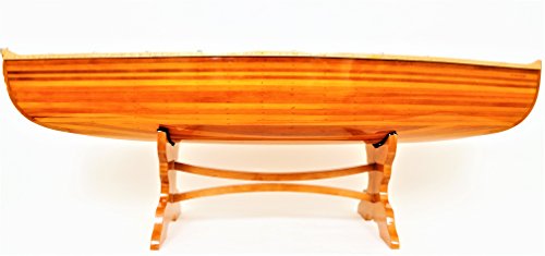 Our newly designed canoe table is 100% handcrafted by experienced and skillful boat builder. It was made of Canadian western red cedar and encapsulated in fiberglass. It is constructed with all the same techniques used to build traditional wooden canoes. This canoe has been converted into a beautiful table with a full glass top and stand. You can use it as a coffee table or display it in your home or office. It'Ll make a great conversation piece.