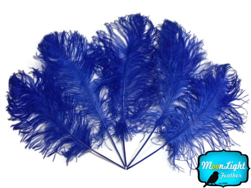 - 10 royal blue ostrich tail feathers each between 12-16 inches long.