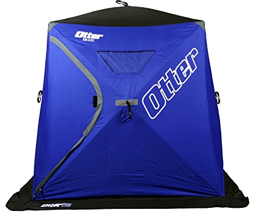 The otter outdoors xth hub shelters feature a patent pending otter thermal-tec 600 denier fabric layering system (light blocking/wind stopping otter shell with a quilted thermal inner shell). the Triple layer shell provides the perfect combination of durability, warmth, and reduced condensation. The shelter has Xtreme duty 11 mm poles, reinforced corners, and a wide base for maximum fishing area. Features front zippered entry door, removable TPU crack-resistant windows with insulated covers, interior cargo pockets, and exterior tie-down rope pockets. Includes a deluxe, oversized carry bag with poly sleeve for ease of packing and added protection. Plenty of room for 2 or 3 anglers. Setup: 75 H x 78.5 W (hub-to-hub), bottom: 72 x 72 , collapsed: 53.93 L x 11.02 W x 11.02 H, weight: 32 lbs, number of sides: 4.