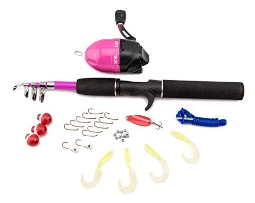 - "WHEN CAN I GET MY OWN FISHING POLE?" Have you heard that? This is the perfect Mini Fishing Starter Set. Let your daughter join in on the fun of outdoor playtime and bonding with this Pink fishing pole starter kit made especially for her! Includes everything you need to get started, such as floats and hooks-- no extras necessary! NOT A TOY- Your daughter will actually catch fish with this Rod & Reel Combo.