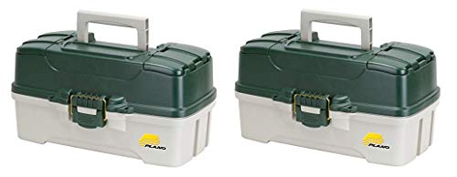 Plano 3-Tray Tackle Box with Dual Top Access, Dark Green Metallic/Off White (Pack of 2)