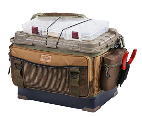 The leader in tackle storage innovation, Plano, introduces the new and improved Guide Series Hydro Flo Tackle Bag. Equipped with 6 3750 stow away, 3 exterior zipper pockets, and 4 slip pockets there is plenty of room for every bait in your arsenal. The sturdy rail system makes it the ultimate Kayak and open water tackle bag with a Perimeter that includes attachment points to hold accessories, receive tie-down straps, secure carabiners, etc. With the rugged waterproof base and padded side pockets for your sunglasses, you'll find no fishing trip will be the same without it. The 3700 Hydro-Flo Sturdy Plastic top with elastic tie down strap holds one 3700 series Stowaway for quick access to your favorite baits and includes six 3750 Series Pro-Latch Stowaway boxes. Features: Hydro-Flo impact- and skid-resistant base, Molded impact-resistant, waterproof base, Two padded pockets for sunglasses or other valuables, cavernous easy-access dual-compartment side pockets, clear, zippered pocket under top cover, PVC mesh pocket on back with adjustable elastic, pliers pocket and wallet sleeve between end pockets and main body. Color: Tan/Brown. Dimensions: 20"L x 13"W x 11.5"H.