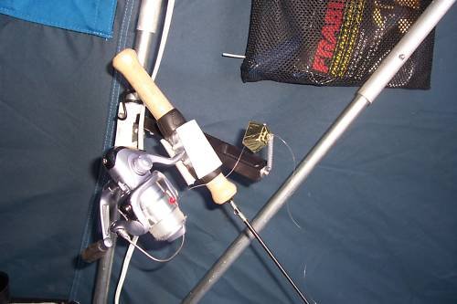 Our Striker bell for portables, flip over, shanty, will fasten to any pole inside trap. You can leave it on all year. When using simply place rod in holder with rod tip down, open bail and set depth, hang line on bell stem. Striker bells are the first alarm system for open face rod and reels that you leave the bail open. You will love this product. Striker bells can be used with or without a bobber.