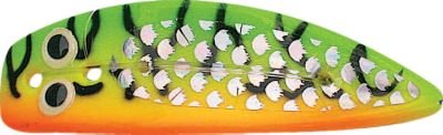 New holographic tape and colored eyes have been added to the popular Kokanee Killer lure with EChip. The embedded EChip bait technology duplicates the electrical nerve discharge of live bait, which triggers strikes by nearby predators. The size 1.0 is 1.5" long. Rigged with dual red hooks for use with corn or other attractors, a 36 inch 10 lb. leader and 25 lb. test bead chain swivel. Two years of testing ensure these improvements will be big winners.