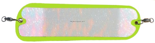 Pro-Chip 8 flasher shape is supplemented with patented diagonal agitator fin at the back of the flasher. Trolled at a wide range of speeds as slow as 1 mph, the resulting action is a combined spin and tail kick that significantly improves the ability of the flasher to attract various species. EChip bait technology duplicates the electrical nerve discharge of live bait, which triggers strikes by nearby predators. The flashers are equipped at both ends with 200 lb. test ball bearing swivels.