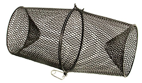 Promar classic Minnow & crawfish traps feature a two piece design easy for access and tending of catch. This Black coated steel TR-601 features a 1.75 inch hybrid entrance to catch minnows or crawfish. Includes spring clip closure.