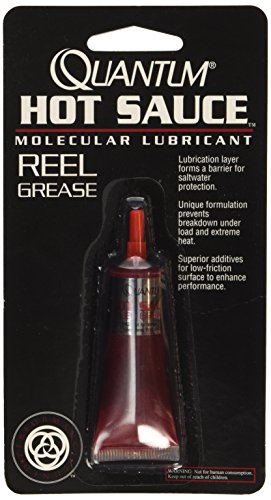 The Quantum Fishing HTGRS Hot Sauce Molecular Lubricant is the answer to the problem of improper lubrication causing a reel to under-perform, corrode or even fail in a short period of time. Not satisfied with the performance of off-the-shelf lubricants, our engineers worked with lubricant specialists to develop their own secret formula they call Quantum Hot Sauce. Only available in Quantum reels, this original grease has unique qualities not found in ordinary reel grease. Standard greases break down with heat and water. Our unique carrying agents prevent structural breakdown in the grease. Quantum's super low-friction polymers, along with exclusive pacifiers hold the grease on the wear surface and prevent migration away from wear surfaces in the gears and drags. Quantum's hydrophobic formulation forces water away to prevent corrosion and structural breakdown. The bright red color gives a visual clue that the grease is where is should be.