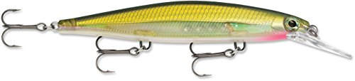 He Shadow Rap deep combines a horizontal struggle with a vertical fade that perfectly mimics a Minnow in trouble in the 4-8 foot depth range. Rapala has perfected the natural Minnow action in this new jerk bait that triggers fish in three ways: on the kick, on a slow fading fall and on the snap back to life. Most Jerk Baits continue on a forward Plane with each Jerk. Not the Shadow Rap deep. It kicks almost 180 degrees right then left, so it can be fished nearly in place with very little forward travel, keeping the flickering fade right in a fish's strike zone.
