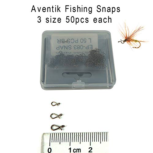 Aventik Quick Hook Snaps provide fast, easy and secure flies or lure change in just seconds. Made of stainless steel, through N-tempering process, much lighter and stronger. Simply tie a Quick Hook Snap on the tippet and snap right in the hook from a fly, a jig or a lure. No effect on your casting. Small and light enough to use on any dry flies. Save your time and also your tippet! Color, bronze finish. Great value pack, 3 sizes, each 50pcs, in total of 150pcs one pack.