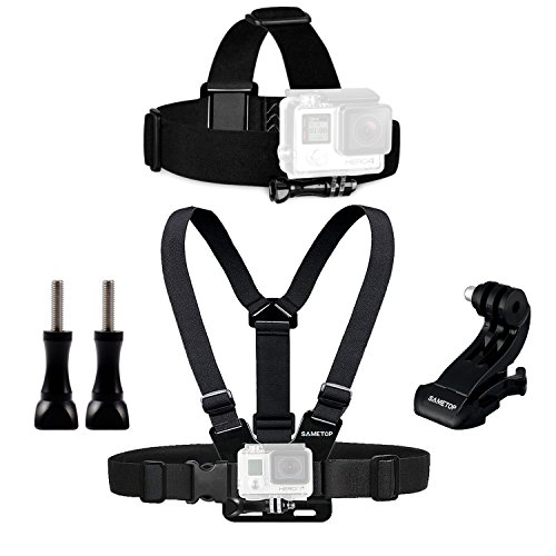 Sametop Head Strap Mount + Chest Mount Harness/Chesty Strap + J-Hook Buckle Mount + Thumbscrews for Gopro HD Hero4 Session, Hero4, Hero3+, Hero3, Hero2, Hero and SJCAM Cameras