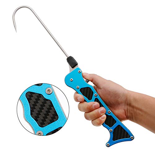 SANLIKE Foldable Fishing Gaff (length/14.5″ to 8.5″) Stainless Steel Hook Spear with Carbon Fiber Plate Handle