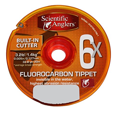 Scientific Anglers Fluorocarbon Tippet with Cutter gives you MORE for your money! More is better! Scientific Anglers Fluorocarbon Tippet with Cutter includes 30 meters of line... that's 9% more than the competition. Patented fluorocarbon resins are combined to form a tough, abrasion resistant, virtually invisible line with a softer core. Includes built-in razor cutter. Stock up! State Line Weight. Order Today! Scientific Anglers Fluorocarbon Tippet with Cutter, 30-meters
