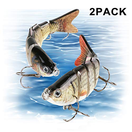 Scotamalone Fishing Bass Lures, 2 Pack, 6 Segment, Tackle 6# High Carbon Steel Anchor Hook, Lifelike Multi Jointed Artificial Swimbait, Hight Quality Hard Bait, 4Inches/0.68Oz