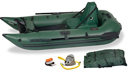 Sea Eagle's 285 Frameless Pontoon Fishing Boat: The unique U-hull configuration of this one man fishing boat provides the maximum fishing space with the least amount of hull weight. This is a super lightweight, super portable fishing craft. The NEW Hunter Green 285fpb is a stealthy inflatable boat that's perfect for fishing or hunting. It goes anywhere, sets up in just 5 minutes and can fit in the trunk of a car. Built to be used on remote ponds, small or large lakes, wilderness rivers, inland bays or saltwater flats. This one man fishing boat is practical in almost any kind of fishing. Best of all, because there are no parts to assemble, this 9' boat packs easily in a car trunk and sets up in just 5 minutes. The Deluxe Package has the super comfortable Green Deluxe Fishing High Seat (which sits you 10" off the floor and offers great back support), a Boat Carry Bag, Foot Pump, Oar Set, Bow Stow Bag, and Repair Kit. Standard Features includes: ◦NMMA Certified ◦New Hunter Green Color ◦Full fabric floor ◦Step bench/footrest ◦4 Carry Handles ◦Raised oarlocks for better rowing ◦2 Built in Scotty® Mounts ◦Printed instructions. All Sea Eagle Boats come with our standard 3 Year Manufacturers Warranty.