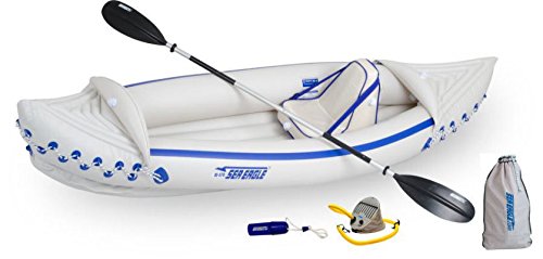 The Sea Eagle 370 Pro Solo is great for beginners or for those who want to eliminate the storage or transportation issues of a hard shell kayak. This kayak is one of the lightest, most portable inflatable boats on the market.