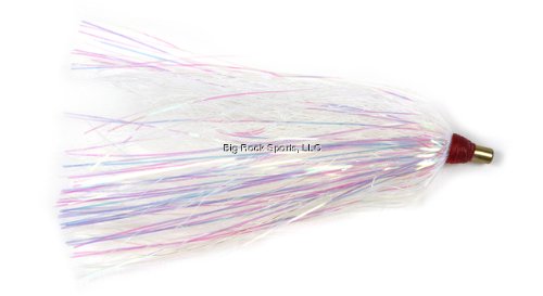Sea Striker BTWPM3 Bucktail Teaser Natural bucktail tied on a brass eyelet Can be slipped over the leader and used as a fish attractor. Approx. 3”long. Pearl Mylar over White Bucktail - 3/pack