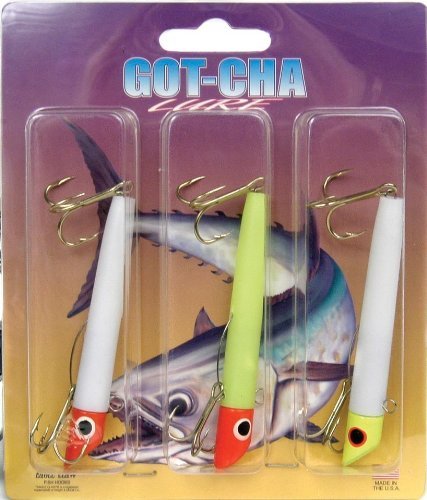 The ORIGINAL GOT-CHA® plug comes in many styles and colors. The lure is excellent for Bluefish, Spanish Mackerel, Trout, and any fish that feed on small bait fish. When fishing, cast and reel in using short, sharp jerks of the rod to produce a deadly swimming action. These 3-inch Gotcha Lures feature plastic body, 1 oz., #2 tail hook, and #4 belly hook.