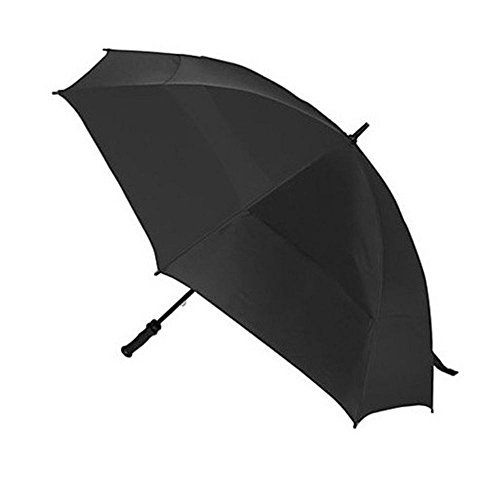 The windjammer compact auto open and close umbrella has it all ergonomic rubber grip handle, electrostatic steel shaft and ribs and generous 43 inch arc and a vented canopy engineered to resist wind