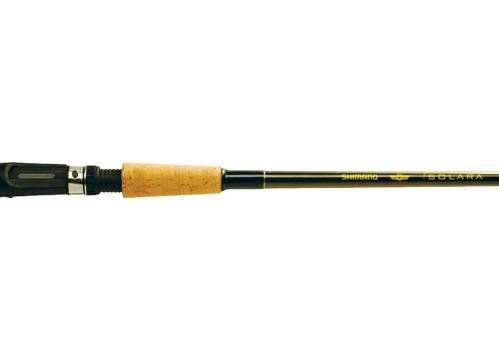 The Shimano solora 2pc spinning rod features a durable aeroglass construction rod blank and reinforced aluminum oxide guides. A solid locking graphite reel seat and comfortable cork handles make this the ideal rod for the avid fisherman.
