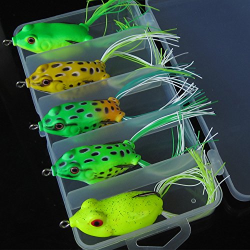 Signstek 5 PCS Topwater Frog Fishing Lures Baits — Bait Traps—Soft Bait—With a Hook—Enable Helping Train Your Fishing Hobby