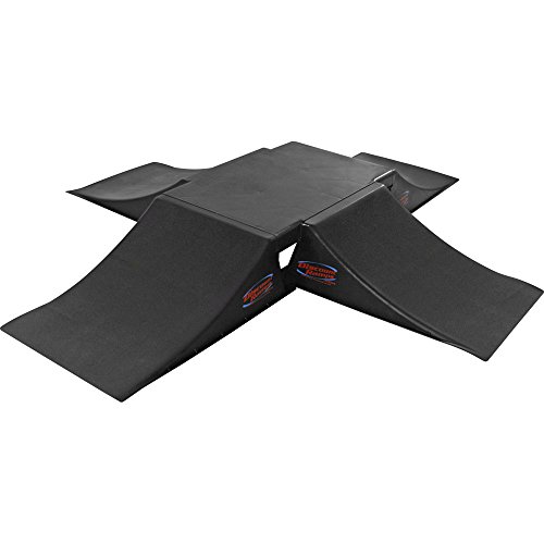Have a blast on your skateboard or BMX bike doing ramp-to-ramp jumps and tricks with this full Transition fun box with four skate ramps and one center table, the cross-style configuration lets you do 180S, flips tricks on a 90 degree turn, plain straight launch tricks, table stalls and more. Each piece is sturdy molded plastic and carries up to 250 lbs. This full fly box also works great for RC cars.