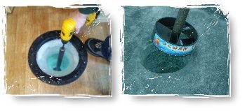 1. Attach Slush Copter to any half inch cordless drill. 2. Push all loose slush back into hole. 3. Push Slush Copter 1/2 way into the hole & pull trigger on drill. 4. Run Slush Copter up and down in hole for 7-10 seconds forcing slush below the ice.