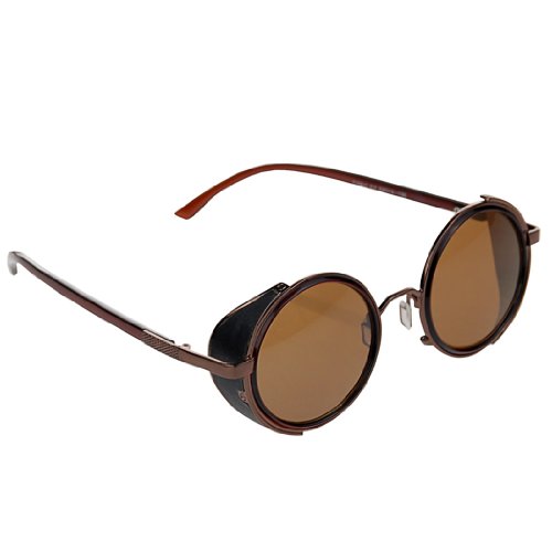 Steampunk Vintage Retro Style 50s Round Copper & Brown Frame Brown Lens Glasses Cyber Goggle Blinder Sunglasses