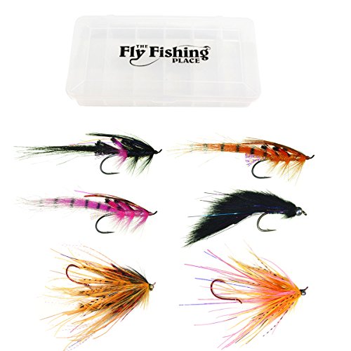 Steelhead Fly Fishing Flies Assortment – 6 Aqua Flies – 3 Motion Prawns – 1 Electric Leech – 2 Mini Intruders – 1 Each of 6 Essential Steelhead Color Flies – Fishing Fly Collection with Fly Box