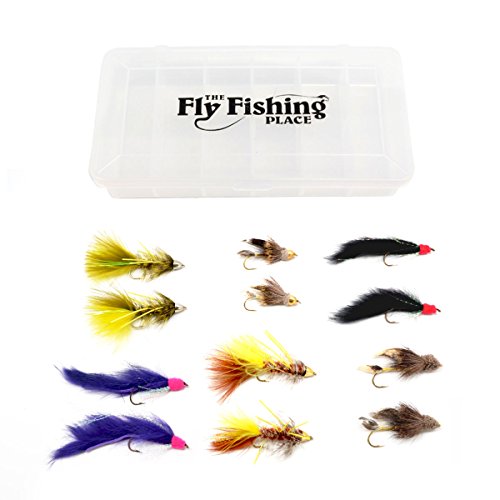 Streamer Trout Fly Assortment – Essential Bass and Big Trout Streamers Fly Fishing Flies Collection – 1 Dozen Size 4 Flies with Fly Box