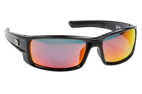 Strike King Plus Shiny Black Full Frame Sunglasses with Red Revo Mirror Polarized Lenses