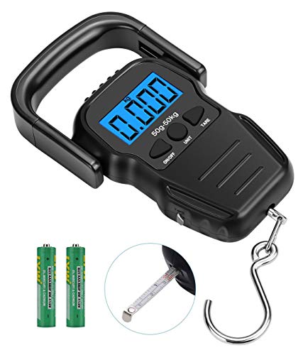 - Accuracy&Durable:The digital scale with measuring tape weighs up to 110LB/50KG,length can be extended to 5FT/1.6M,super durable with built-in solid construction.Suitbale for fishing,shipping,travel,kitchen,luggage or postal.The electronic scale use aluminun alloy as the sensor which is the key component assuring the accuracy,stability and durability.