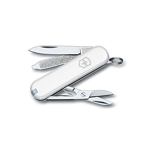Swiss Army Classic SD - Features include: Small blade, Scissors, Nail file with screwdriver tip, Toothpick, Tweezers, Key ring, Life time warranty, Size: 58 mm | 2 1/4 inch. Available in Red, Blue, Black, Green, White, Yellow, and Pink Camo.