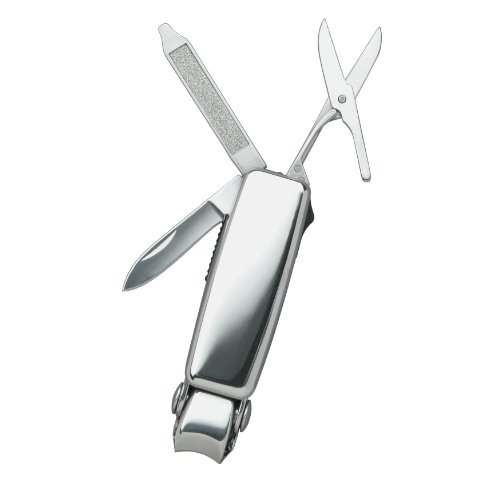 - Stainless Steel Personal Care Tool with Nail Clipper, Nail File, Nail Cleaner, Scissors, Knife and Micro-Flashlight.