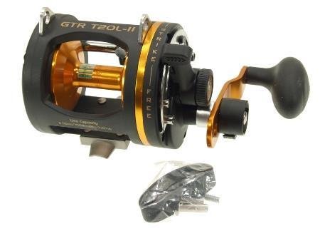 Deluxe Model T20L-II Small Capacity Two Speed Gear ratio (Hi/Low): 3.8:1/1.5:1 Bearings: 4 Precision Stainless Steel Ball Bearings Line Capacity (Mono Line): 45lb/400yds Max Drag: 29 lbs Weight: 28.8 oz Deluxe Version with Level Wind system which ensures that line is distributed evenly on the spool upon retrieval. This is a lightweight graphite two-speed reel that is ideal for trolling and bottom fishing. Designed to allow you to quickly adjust the drag speed on a running fish. Great for Halibut, Rock Cod and other large fish (30-50 lb). Constructed of corrosion & rust resistant materials which ensure years of rust-free operation! Right Hand model. Features: - Graphite Composite Frame & Sideplates with one-piece aluminum spool - Single Pawl Stainless Steel Anti-reverse , Stainless Steel Gears - Comfortable Ergonomic TPR Rotating Handle - Made in Taiwan Each GTR reel has been hand-inspected and comes complete with full instructions and a One Year Manufacturer's Warranty.