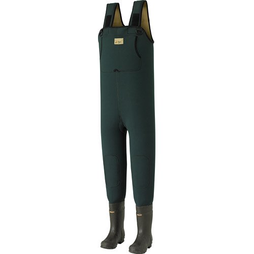 The Toggs® Amphib 3.5-mm neoprene boot foot wader includes attached boots with 200-gram Thinsulate™ insulation for warmth and "Chain Track" cleated outsoles for traction. Bib-style neoprene suspenders keep the fit secure, and the hi-back upper design allows for deep wading or float tube use.